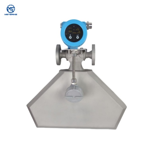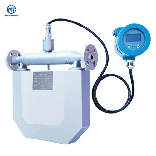 The mass flow meter is based on the Coriolis principle and uses a magnet and coil assembly installed on the measuring tube to cause the measuring tube to vibrate in a reciprocating cycle at a fixed frequency under the action of alternating current. When the industrial process fluid medium flows through the measuring tube, the Coriolis force effect will occur, and the two measuring tubes will undergo torsional vibration. At this time, the detection coils installed at both ends of the measuring tube will generate two signals with different phases. The phase difference is proportional to the fluid mass flowing through the sensor measuring tube. Therefore, the fluid mass value can be obtained by measuring the phase difference.